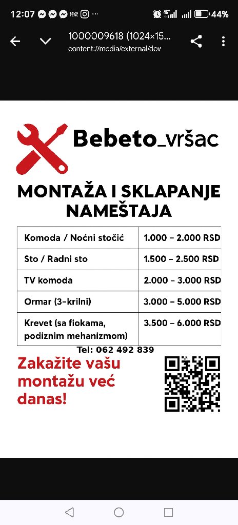Vršac · Montaža nameštaja · Stolar · Majstor
