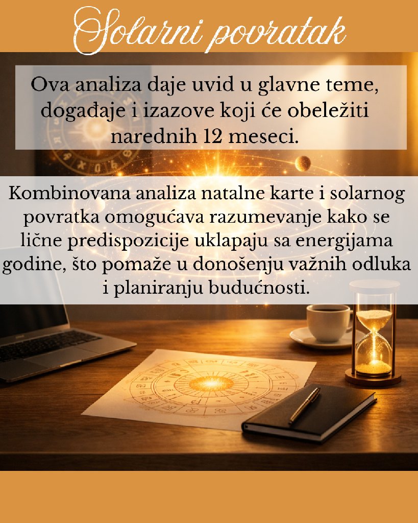 Astrologiju koristim kao alat za razumevanje odnosa, životnih faza i ličnih obrazaca. Konsultacije su konkretne, bez mistifikacije, sa fokusom na realne situacije i odluke. Cilj je da dobijete jasnoću i smer koji možete odmah da primenite u svakodnevnom životu.