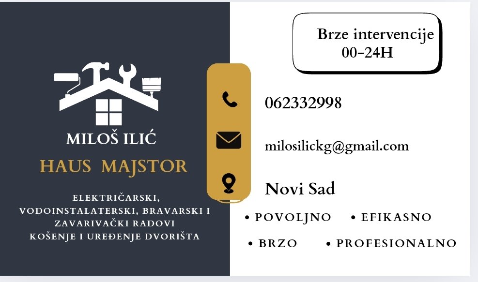 Elektroinstalaterski, vodoinstalaterski, bravarski i zavarivački radovi. Košenje i uređenje dvorišta. Montaža nameštaja. Brze intervencije 00–24h. Povoljno • Efikasno • Profesionalno 📞 062 332 998