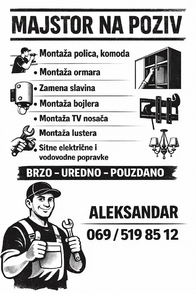 Kragujevac · Vodoinstalater · Montaža nameštaja · Električar