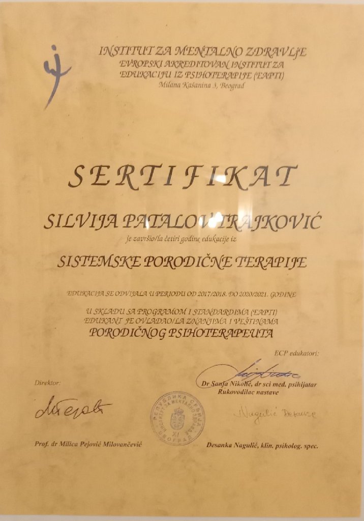 Ja sam sistemski porodični psihoterapeut sa desetogodišnjim iskustvom u radu sa decom, adolescentima, starijima, porodicama, emotivnim partnerima, osobama sa invaliditetom.