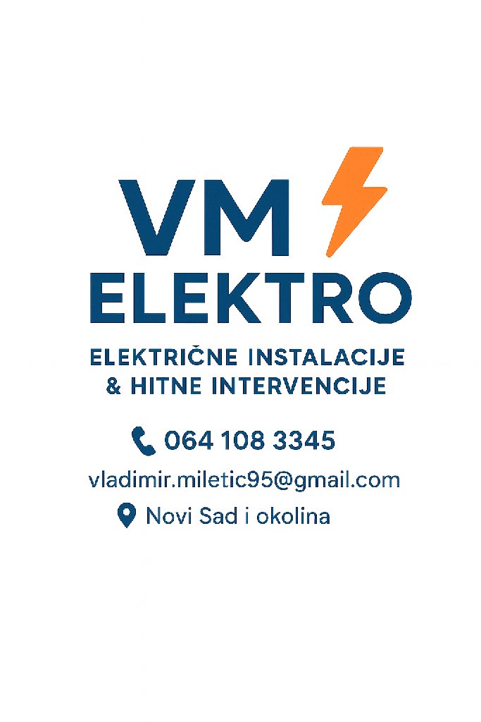 Firma VM Elektro iz Čuruga specijalizovana je za sve vrste elektroinstalacionih radova u domaćinstvima, poslovnim objektima i industriji. Sa višegodišnjim iskustvom u oblasti elektrotehnike, nudimo pouzdana i moderna rešenja – od klasičnih instalacija do savremenih sistema pametnih kuća. Naš tim čine sertifikovani i profesionalni električari koji rade brzo, efikasno i u skladu sa svim važećim standardima i zakonima. Pružamo kompletnu uslugu – od planiranja i saveta, preko izvođenja radova, do završnog testiranja i održavanja. Bilo da gradite novi objekat ili renovirate postojeći, VM Elektro je vaš pouzdan partner za kvalitetnu i sigurnu elektroinstalaciju. Usluge koje nudimo: Niskonaponske i jake struje instalacije Pametne instalacije (smart home sistemi) Ugradnja rasvete i LED sistema Postavljanje elektro ormana i osigurača Detekcija i otklanjanje kvarova Održavanje i servis elektroinstalacija